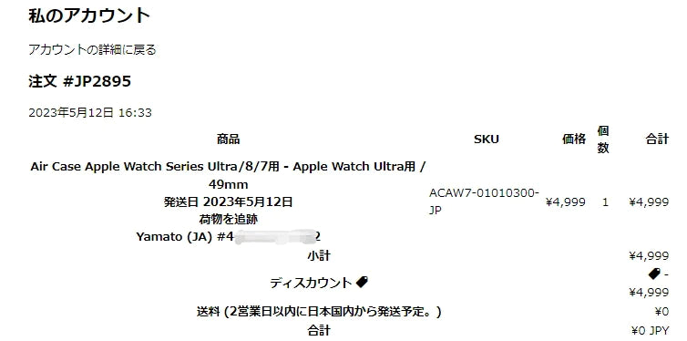 通常であれば、支払いが完了した後、以下のような注文詳細が表示された画面が出ます。