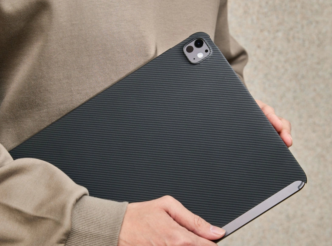 航空宇宙グレードのアラミド繊維を採用。iPad Pro を守るだけでなく、高い強度と耐久性、色あせにくさを備え、見た目にも美しく、手に馴染む質感を実現しました。