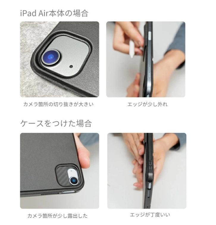 ただし、iPad Air 4/5とiPad Proではカメラのデザインが異なるため、 MagEZ Folio