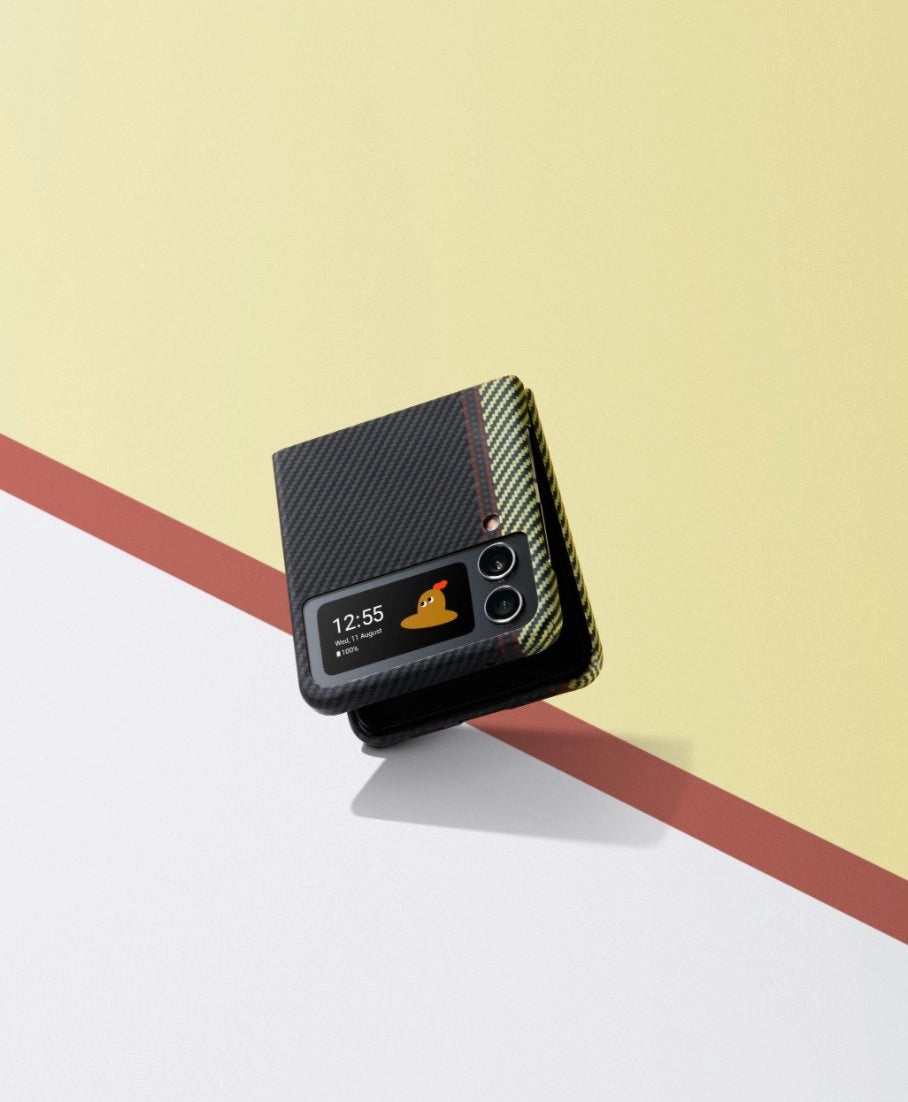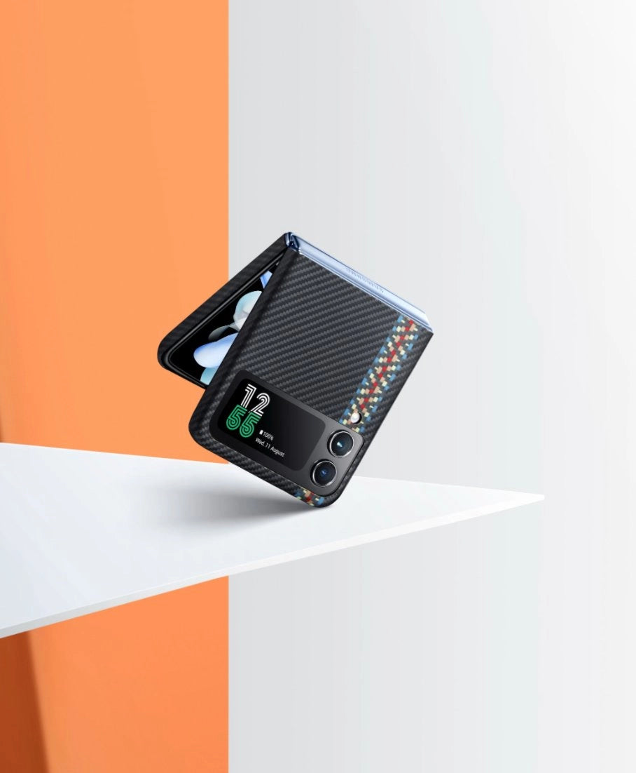 航空宇宙グレードのアラミド繊維を使用した超薄型のGalaxy Z Flip4用ケース。