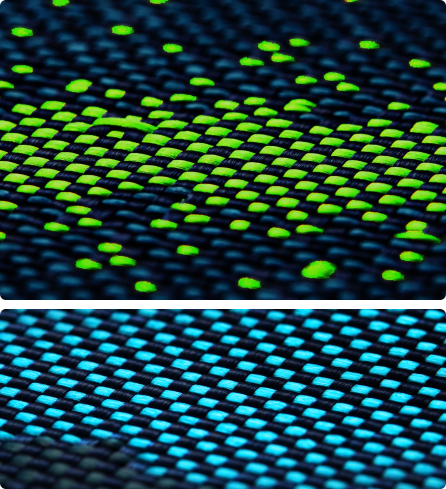 優れた耐久性を誇るアラミド繊維ですが、その用途は着色や織り方によって限定されていました。2021年にPITAKAは、浮織(日本語読み:うきおり、英語名:Fusion Weaving))技術を独自開発しました。その結果、1台の織機で複数の織り方を用いて着色したアラミド繊維の生地を織ることができるため、多様多色なアラミド繊維製のスマホケースを作り出すことができるようになりました